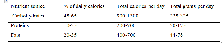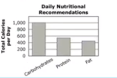 The graph that well explains the data in the table is the fourth graph. This is because it shows a daily calories for carbohydrates at 1000, proteins (400-600), and fats (400-600).