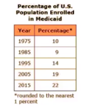 The table provides information regarding the Medicaid program, a part of President Lyndon B. Johnson's Great Society initiatives, which were enacted into law in 1965.